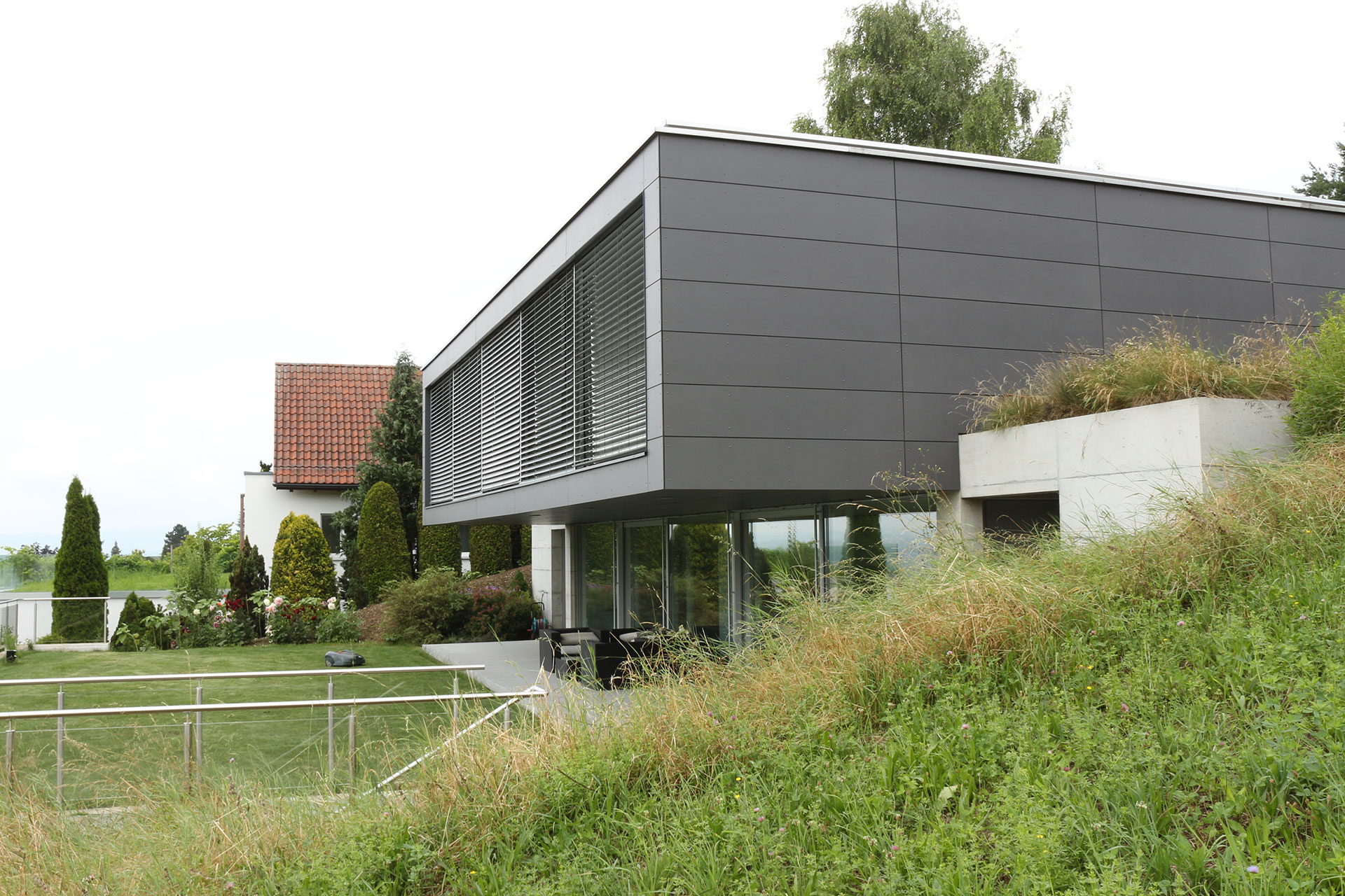 Neubau Einfamilienhaus Ortschaft: Winkel Ausführungsjahr: 2011 Bauherrschaft: Privat Bauweise: Massivbau Fassade: Hinterlüftet bekleidet, Swisspearl